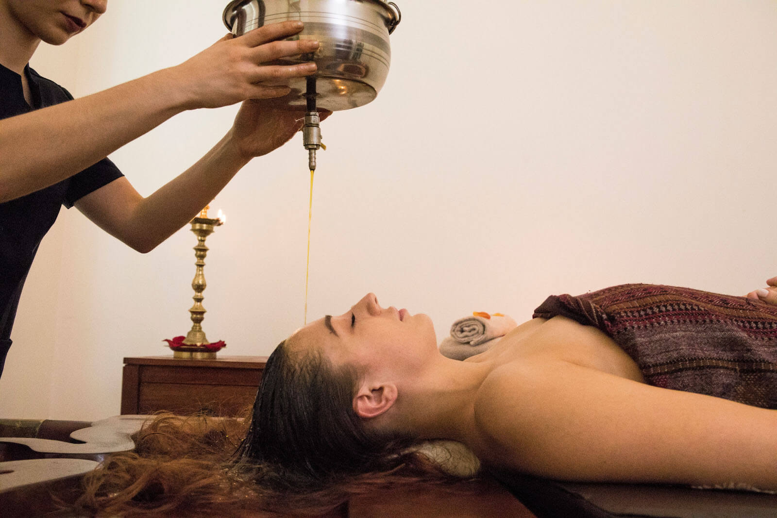 - Nasya – Nasal administration of herbal oils for head and sinus cleansing