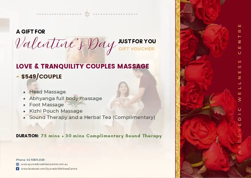- 30 min Abhyanga full body Massage – with 150mls of hot herbal oils– For Fatigue, Stress, Anxiety and Tension. Deeply relaxing and meditative with long lasting benefits. This is a gentle but firm Ayurvedic massage from head to toe, assisting circulation and relaxation.